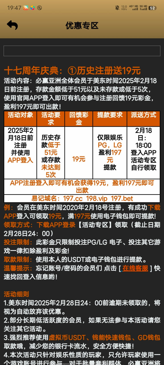 历史注册在2月18日之前的,最低领取19元,190可以提款,特邀碰瓷!