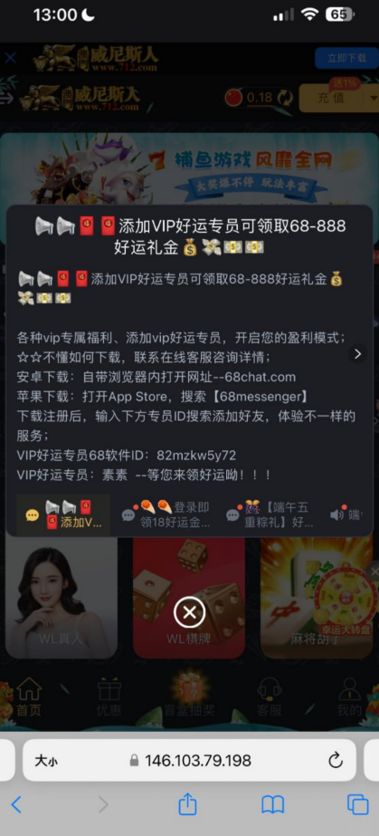 历史用户添加他们的68专员,申请彩金,他是分开送的,但是好像也是第一次送18跟38,具体送看脸,出款自测!