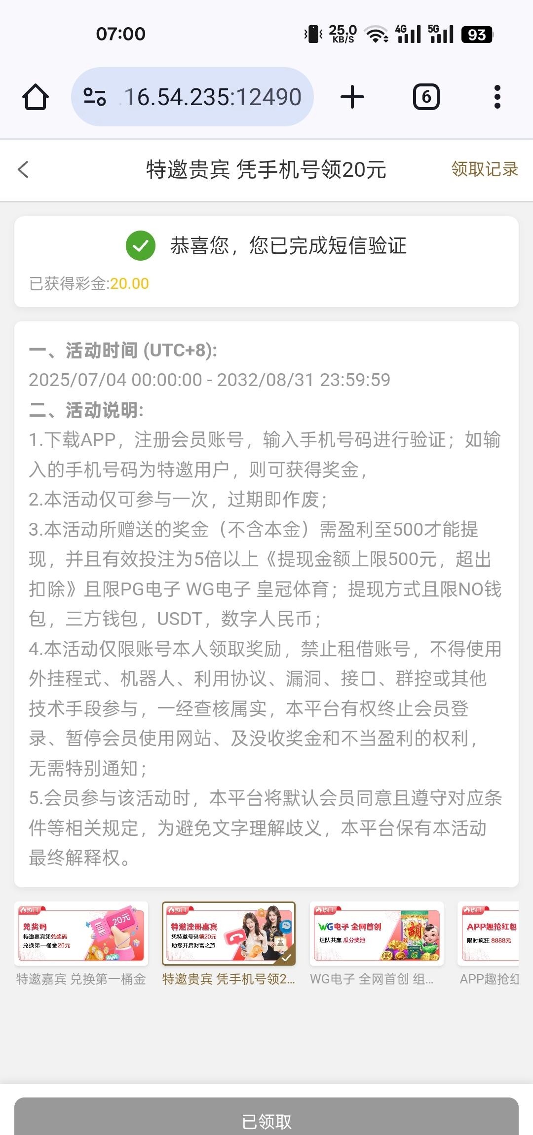 注册验证短信秒20,我下注20中的幸运注单充值的10快提现的300