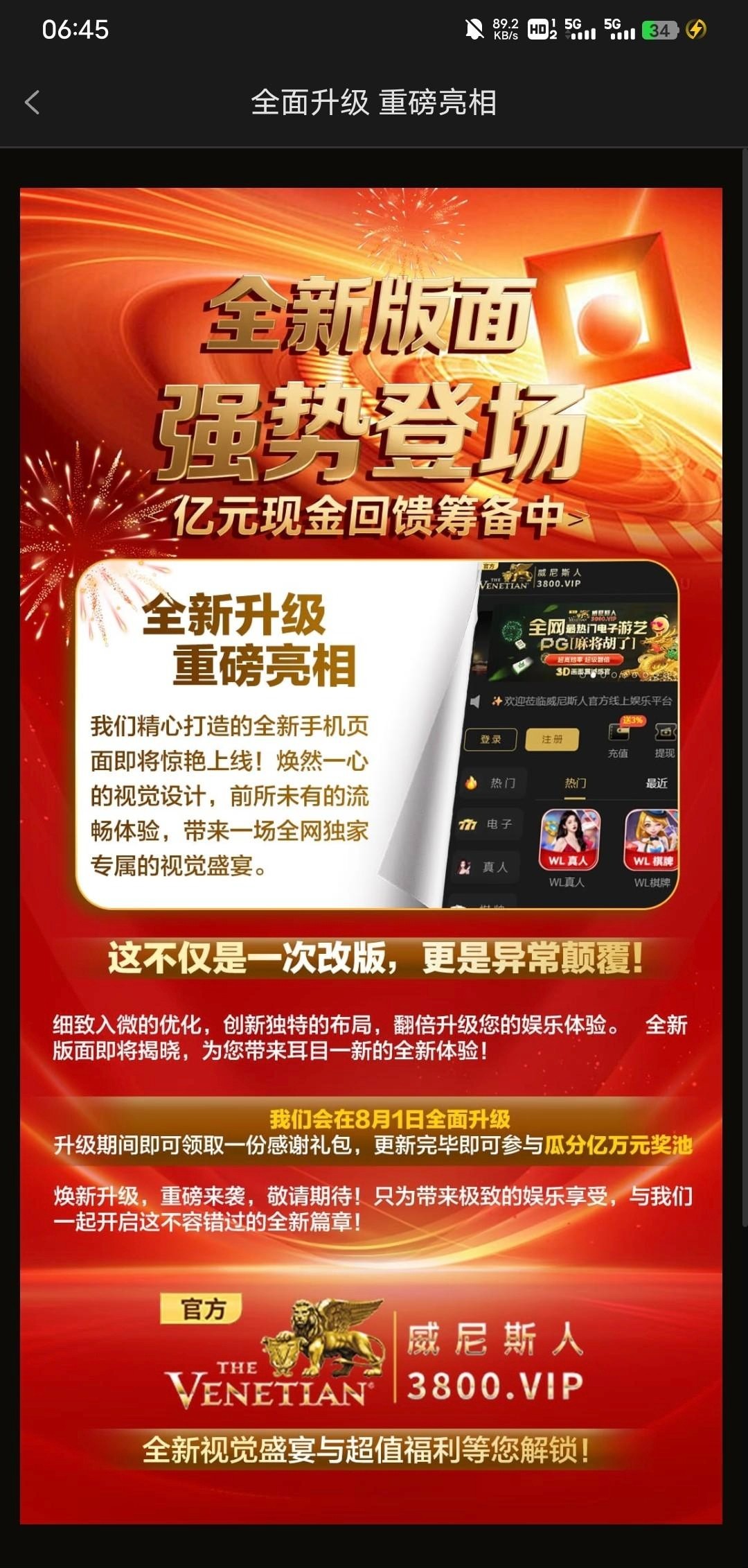 【威尼斯3800】新版本彩金