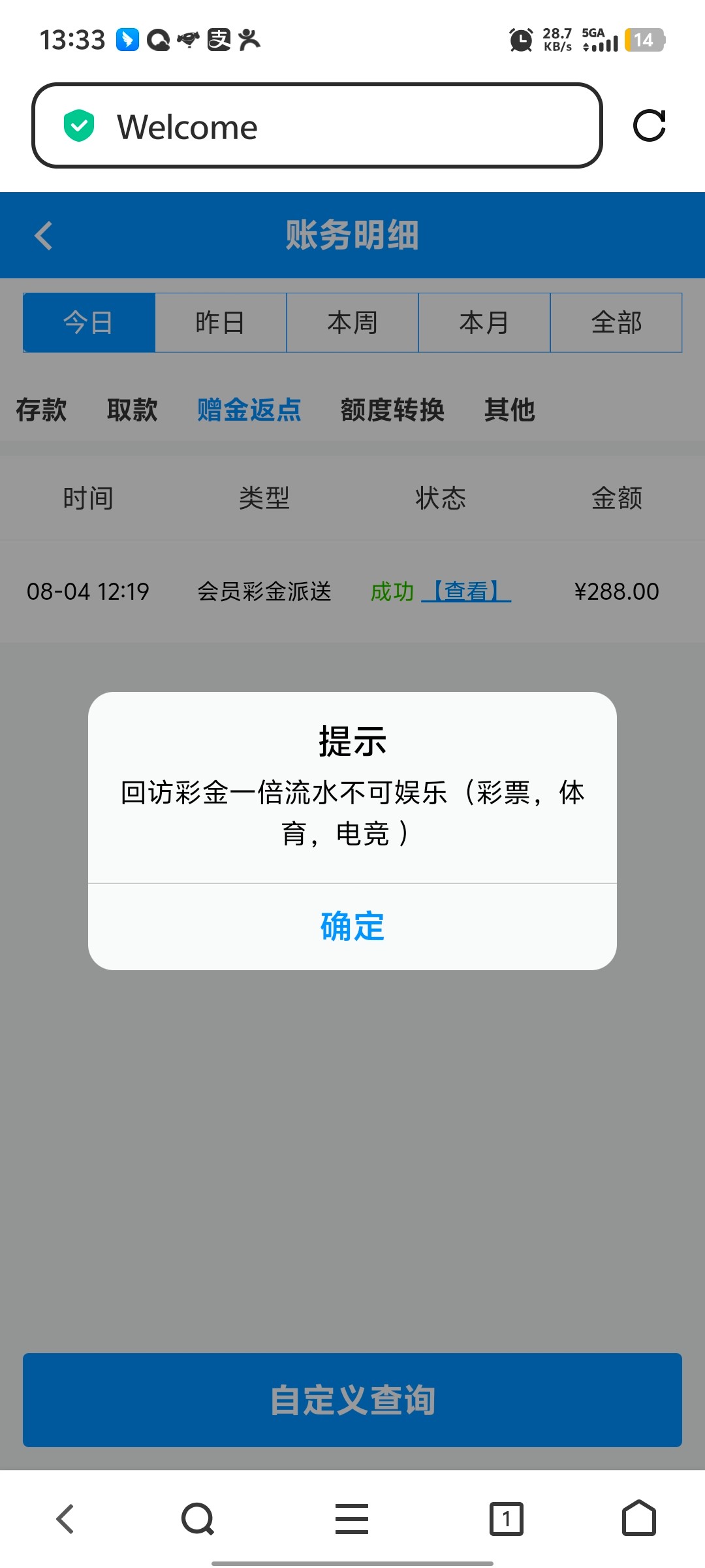碰瓷回访288彩金 我没接到电话也碰到了 多碰几次总能碰到 我6月底也碰到一次 7月份没给 今天去又碰到了 可以去试试