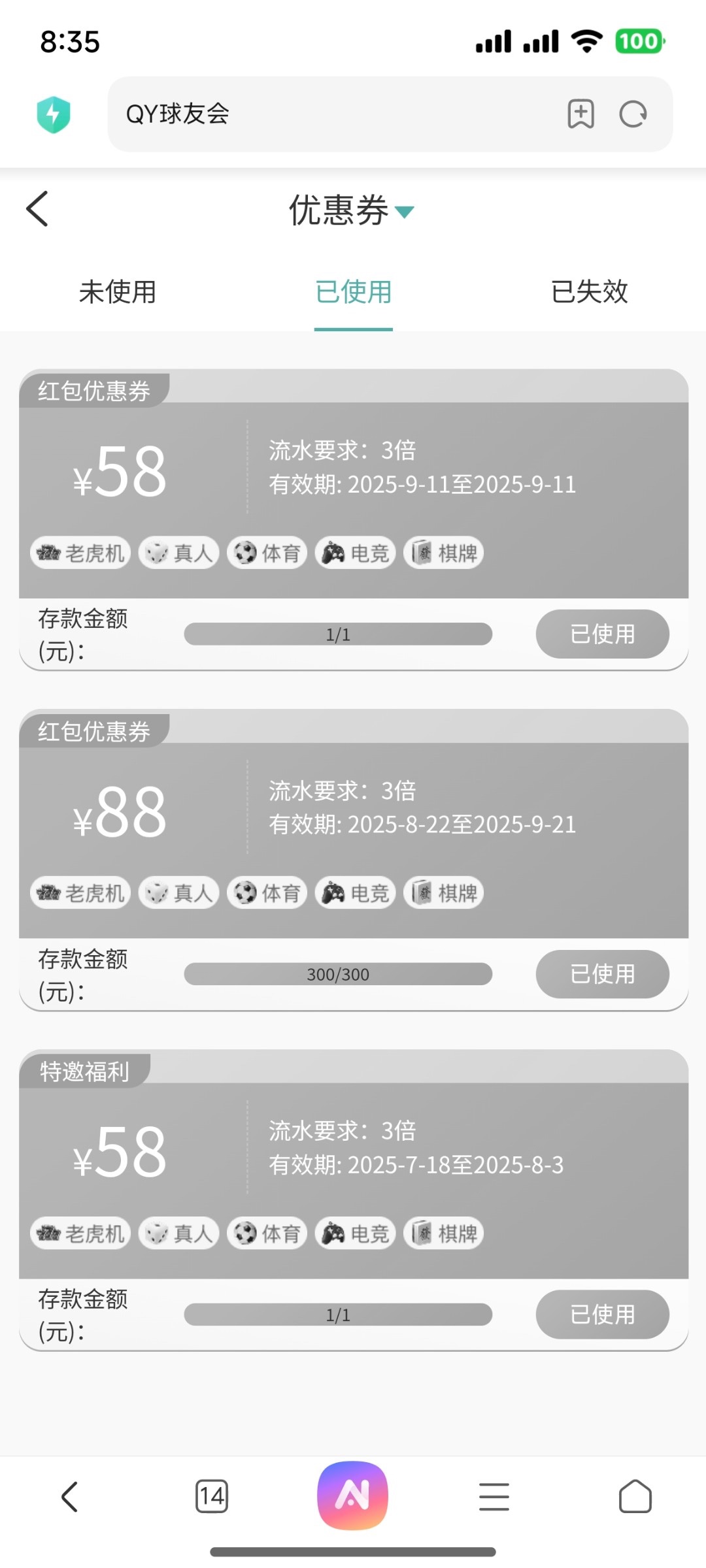 这个优惠券只有今天有效 我看渠道最低得冲50 我58优惠下了220