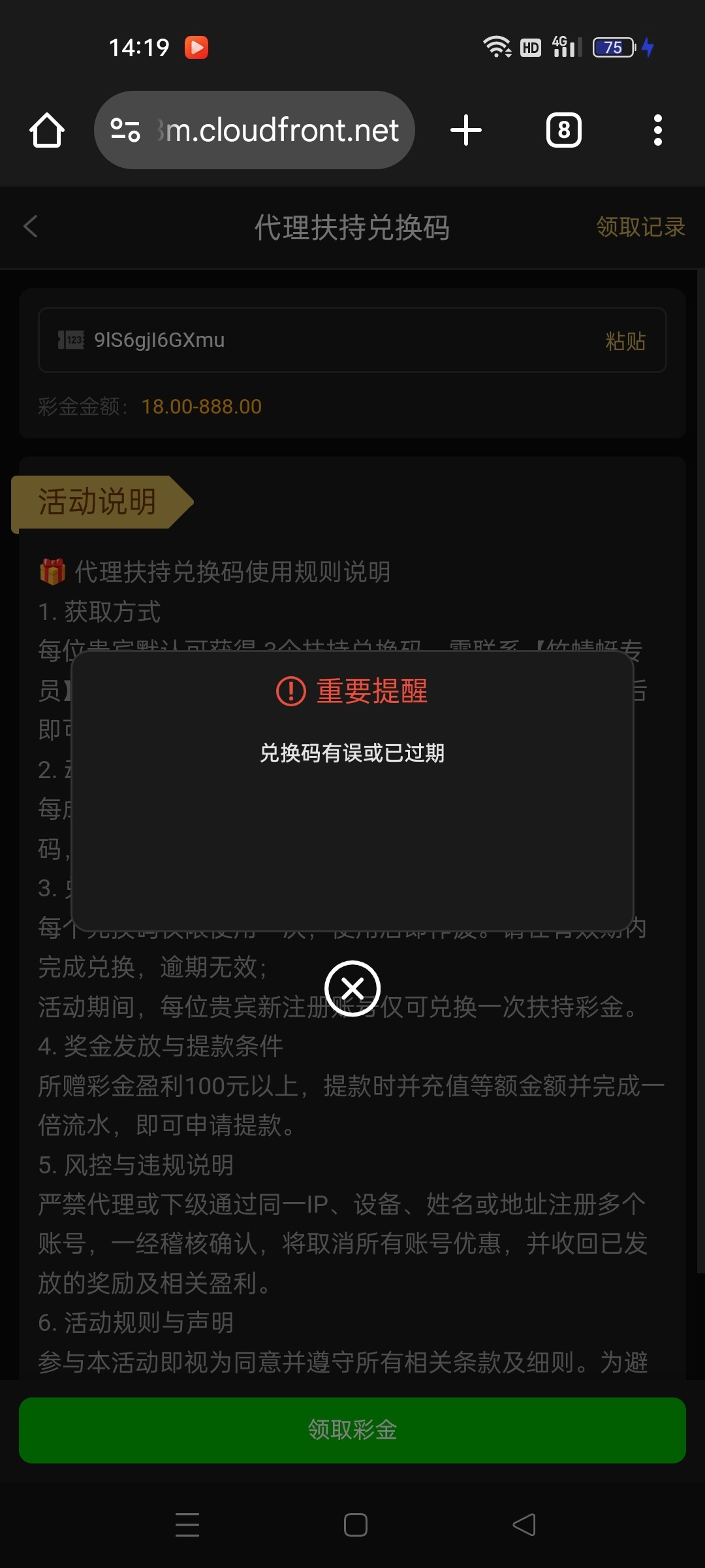 兑换码有误