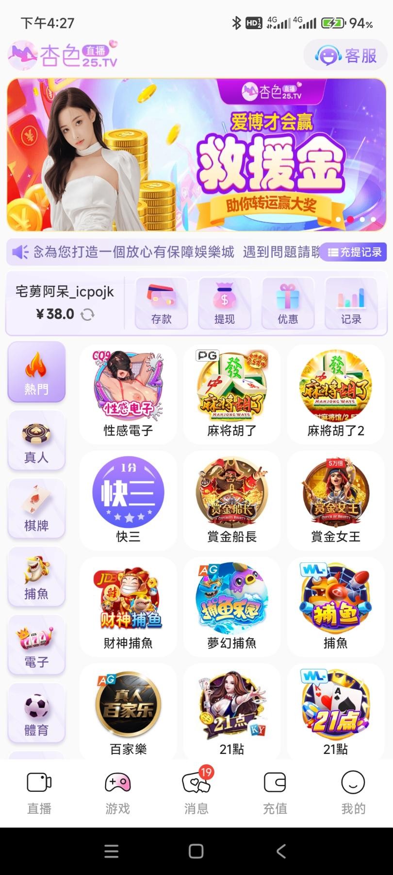 【杏色直播】电话彩金