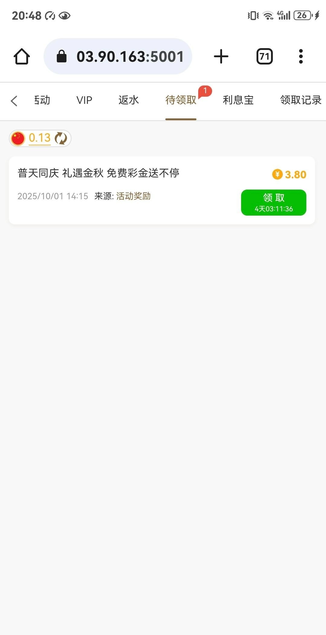 我领了3.88充值过100