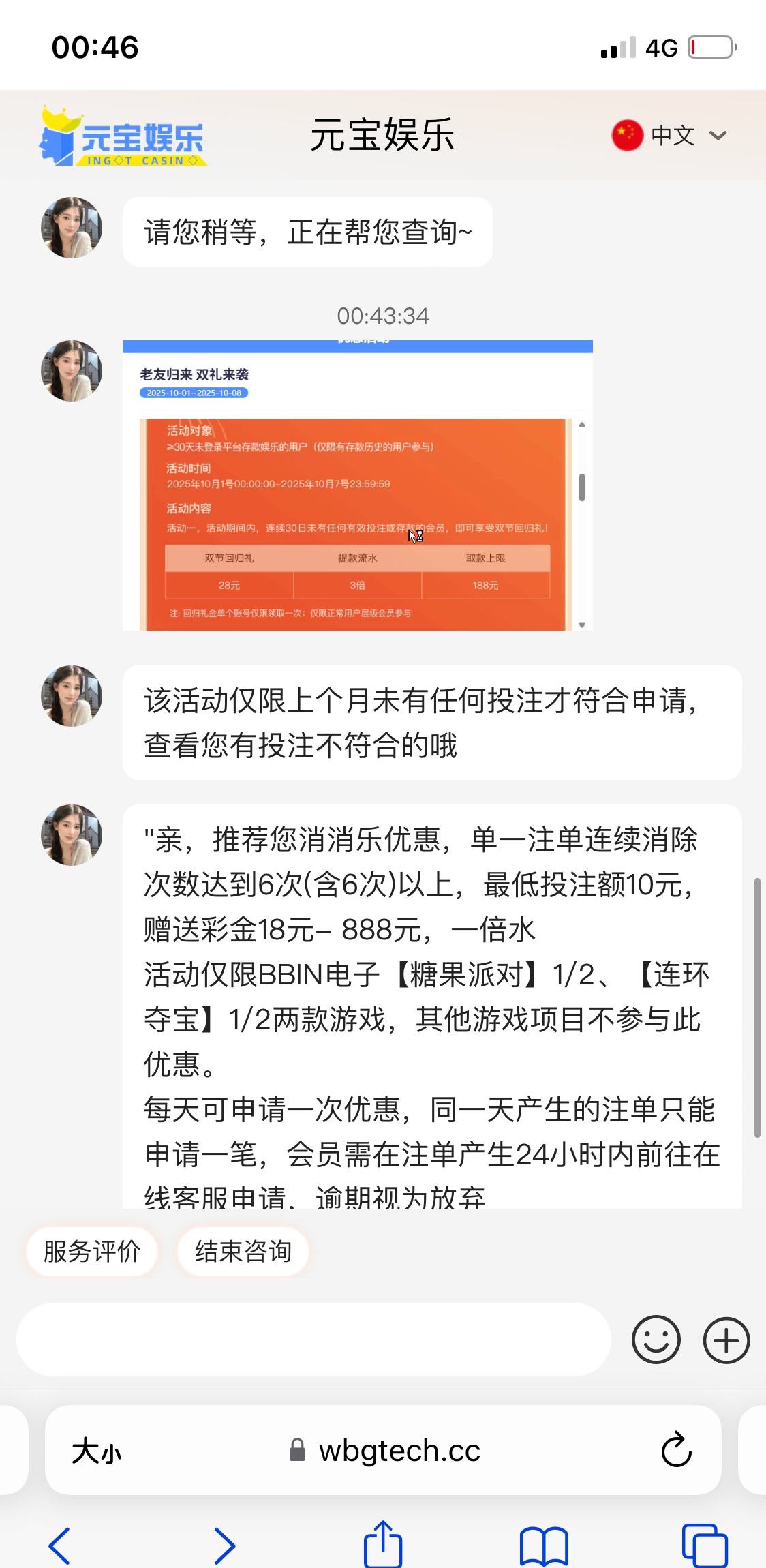 客服搁着和我玩文字游戏 各位老哥大概是9.4 9.5两天领取的升级彩金吧好像是 现在可以领国庆的了 28元上限188 网址388yb.cc