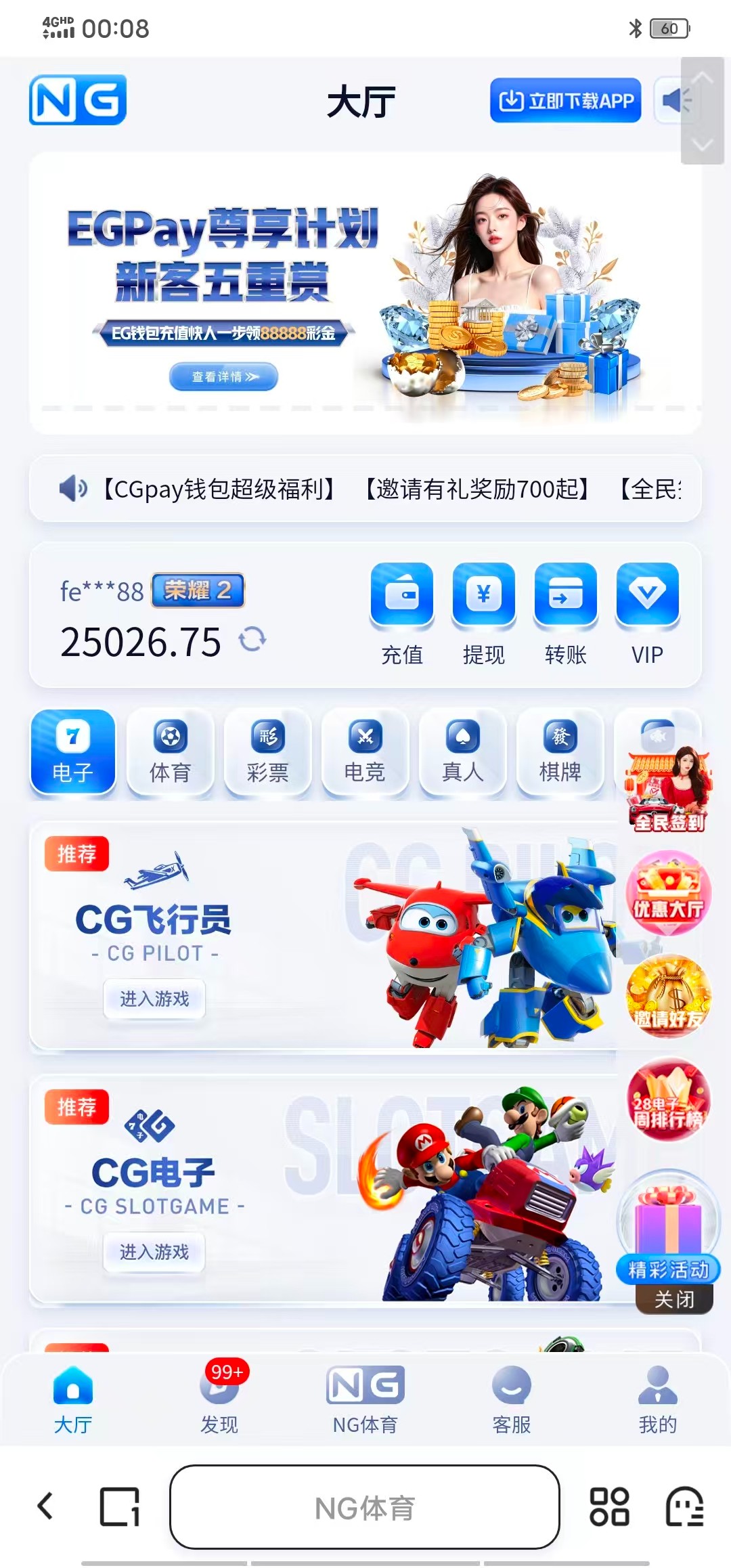 新用户首存300+28/500+58/1000+108