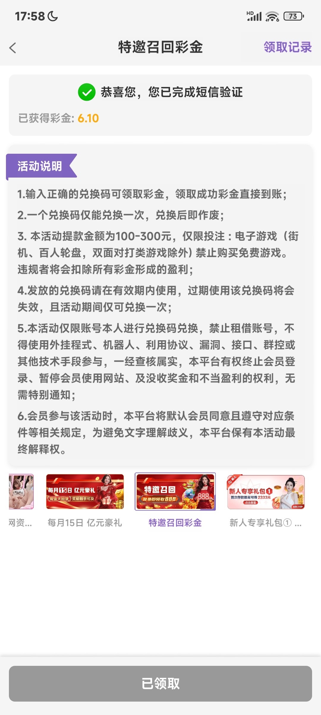 才6块彩金这么少