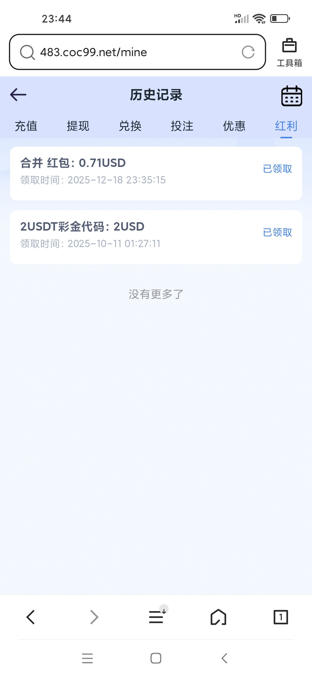 翻到云梦城进去自助优惠里可以领取个合并彩金,我没存过,领了0.71u!你们自己去看看有没有,网址就是贝壳推荐里的