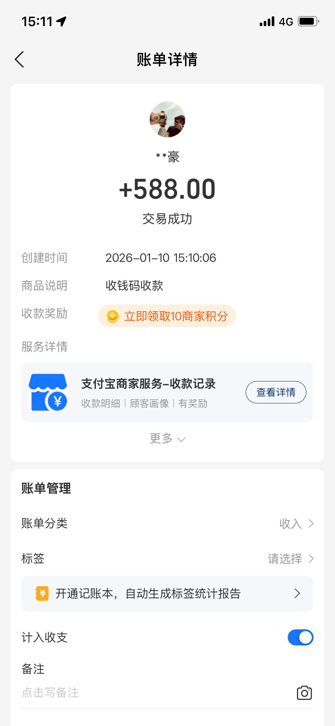 胜天返现588到账