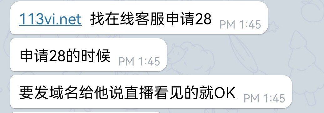 注册找客服报ID申请28,问就说直播来的,或者给链接或者报注册地址113vi.net