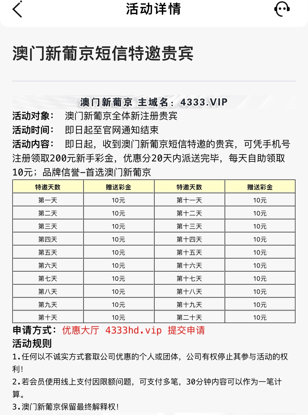 新用户注册绑卡自助申请送10,送了的可连续申请送20天。特邀碰瓷。