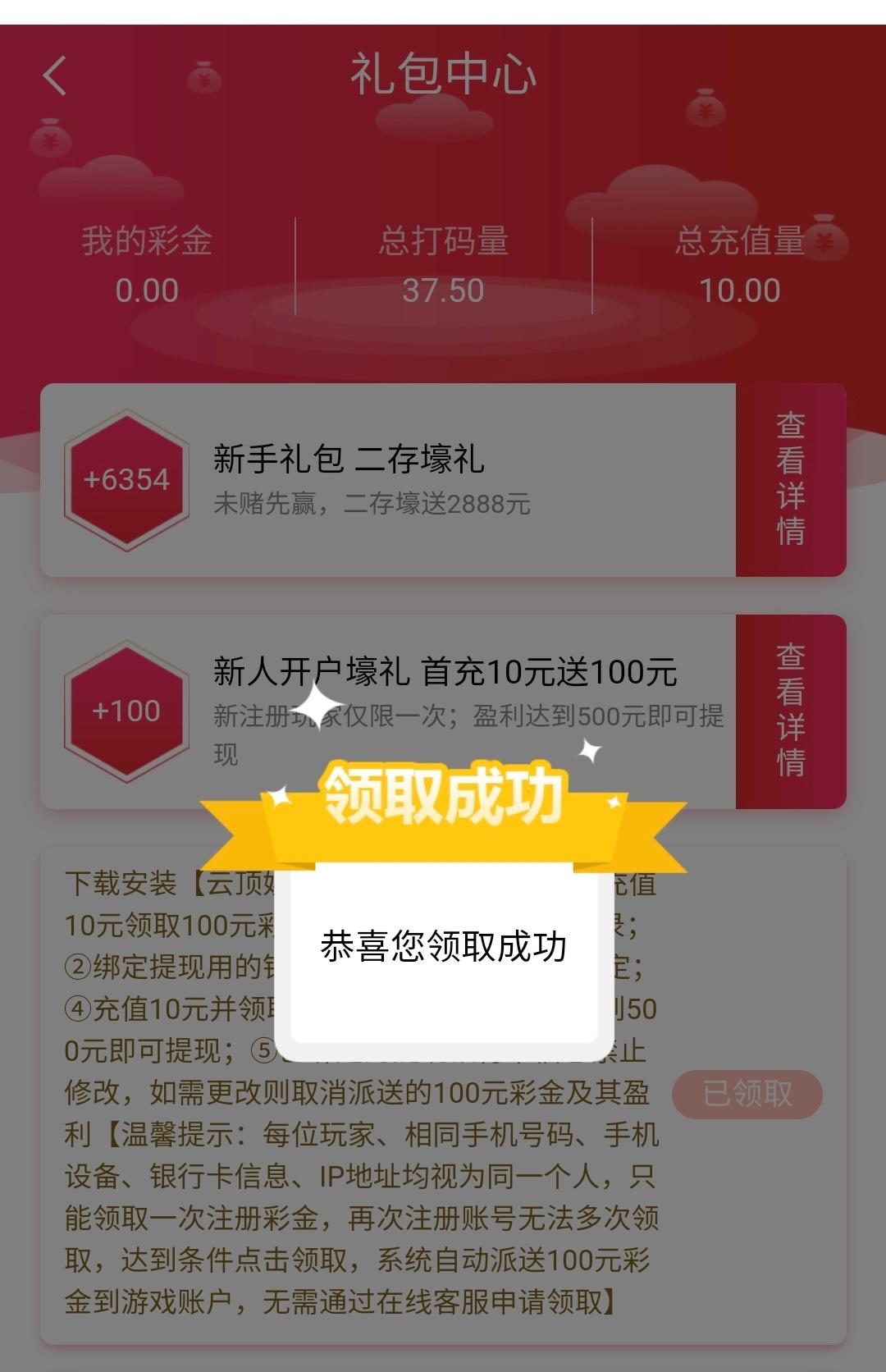 要记得在礼包中心领取彩金