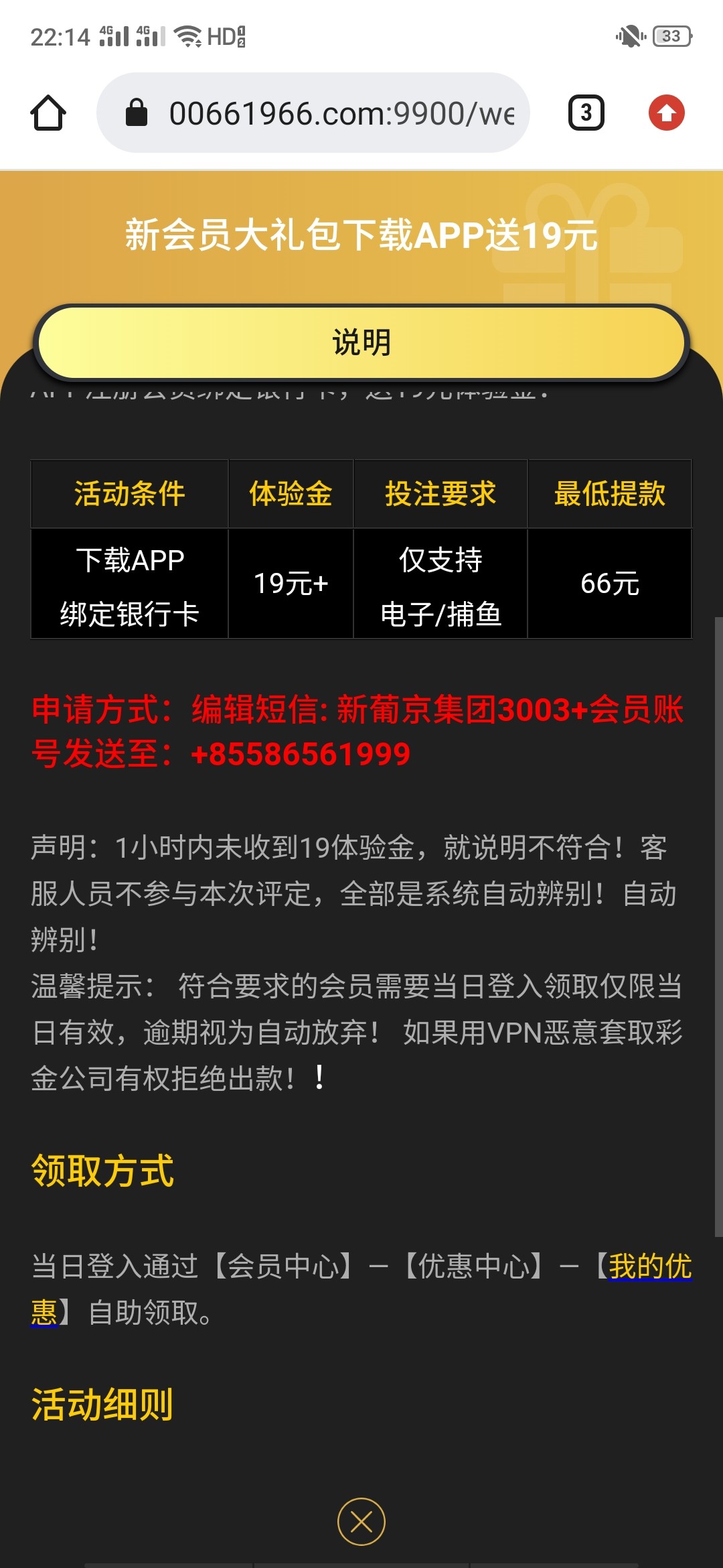 注册发短信送19,新手基本都送